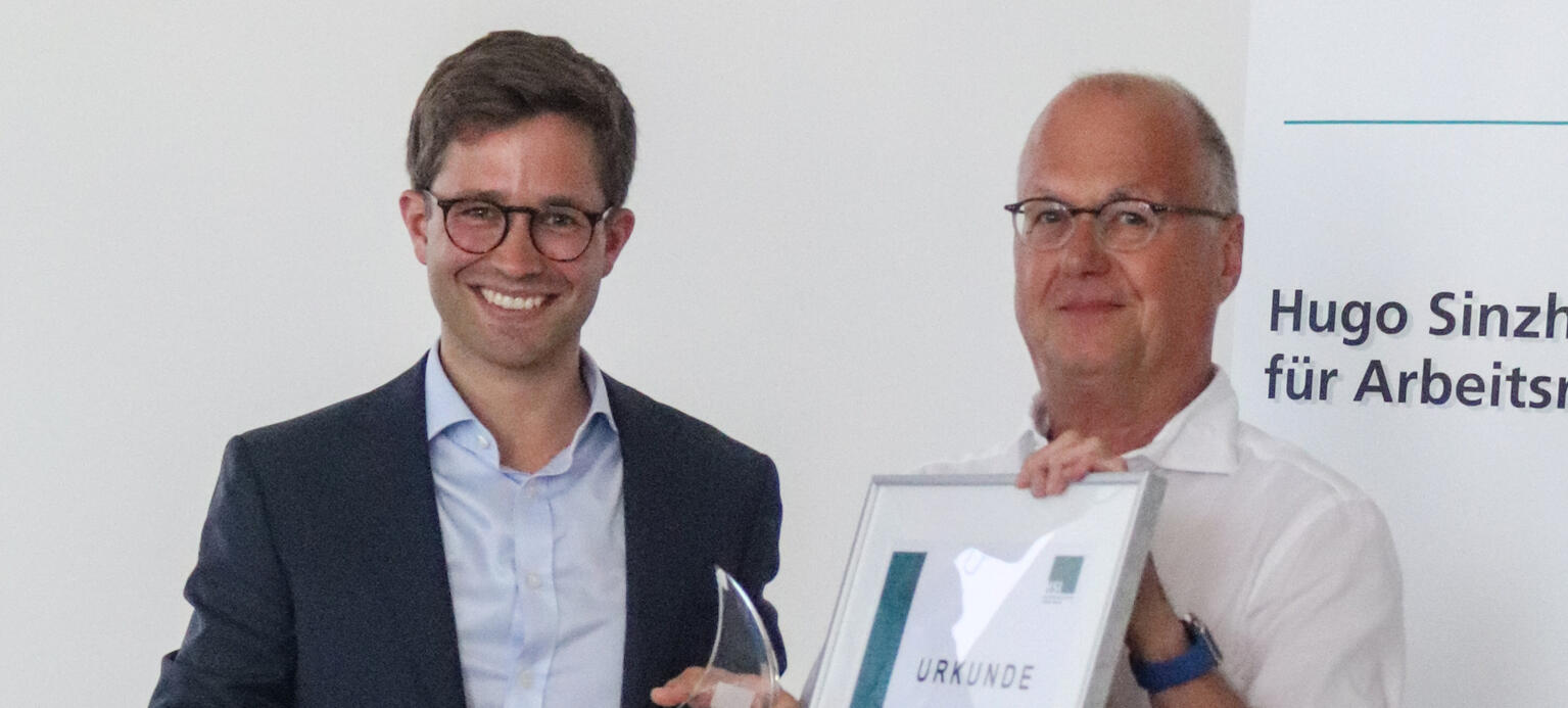 Im Anschluss an den Vortrag wurde der Hugo Sinzheimer Preis für das Jahr 2018 verliehen. Der dem Namensgeber des HSI gewidmete Preis wird jährlich für herausragende arbeitsrechtliche Dissertationen verliehen. Aus den eingereichten Bewerbungen hat die dreiköpfige Jury, bestehend aus Prof. Dr. Dr. h.c. Ulrich Preis, Prof. Dr. Marlene Schmidt und Prof. Dr. Bernd Waas, die Arbeit von Dr. Hubertus Reinbach ausgewählt. Der Preisträger hat an der Bucerius Law School über „Das gewerkschaftliche Streikmonopol – Der Streik zwischen Verfassung und Völkerrecht“ promoviert. Die Arbeit wurde in einer Laudatio von Prof. Dr. Bernd Waas eingehend gewürdigt.